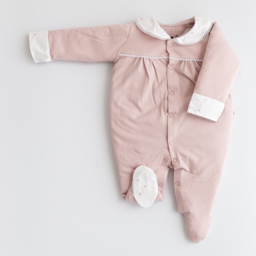 Macacão Manga Longa Franzido com Gola Bordada