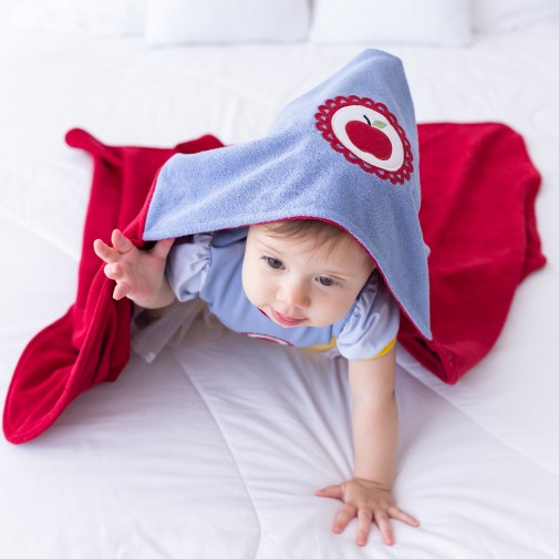 Uma toalha feita em Malha Atoalhada com tingimento exclusivo D´Bella for Baby, que não desbota, não solta tinta e não agride a pele.