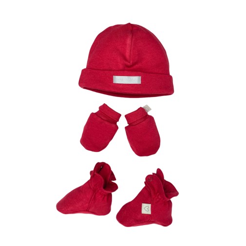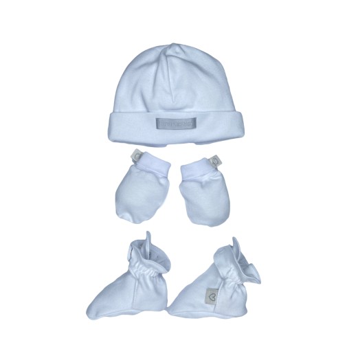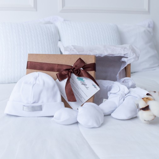 Contém: Touca + Luva + Sapatinho + caixa + papel de seda perfumado + laço + cartão mensagem + fita adesiva.