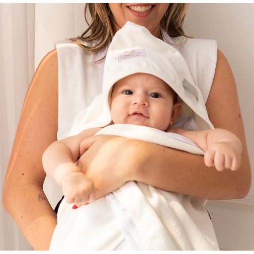 Toalha Multifunional 4 em 1: 1) Toalha Avental 2) Toalha Capuz 3) Toalha Fralda Solta 4) Toalha que vira Capa. Desenvolvida em malha atoalhada dupla super macia e com toalha fralda cirurgica presa por botões. A toalha Fralda é solta para facilitar a secagem do bebê nas áreas mais dificeis e delicadas, com opor exemplo atrás das orelhas, entre os dedos e nas partes intímas. A toalha mais grossa e dupla vem com capuz e é ideal para secar o restante do corpo e proteger da friagem. Com ALÇAS para virar uma toalha avental dando maior segurança e apoio na hora do banho.
