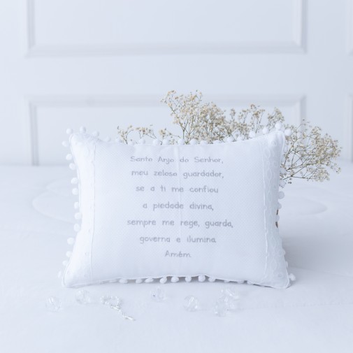A nossa almofada decorativa com a oração do Santo Anjo é perfeita para trazer uma atmosfera de serenidade e proteção ao quartinho do bebê. Confeccionada com tecido macio e de alta qualidade, ela não só embeleza o ambiente como também carrega uma mensagem de amor e segurança. A oração bordada do Santo Anjo reforça esse sentimento, lembrando do carinho e da proteção desejados para cada momento de descanso do pequeno.